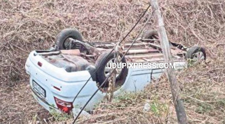 ಅಂಬಲಪಾಡಿ: ಹೆದ್ದಾರಿ ಮೇಲ್ಸೇತುವೆ ಕಾಮಗಾರಿಗೆ ಅಗೆದಿರುವ ಹೊಂಡಕ್ಕೆ ಮಗುಚಿ ಬಿದ್ದ ಕಾರು: ಪ್ರಯಾಣಿಕರು ಅಪಾಯದಿಂದ ಪಾರು