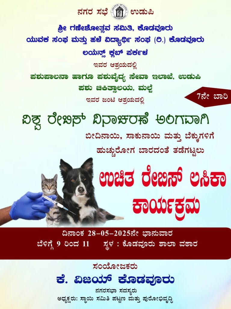 ಉಡುಪಿ:ಸೆ.28ರಂದು ಉಚಿತ ರೇಬಿಸ್ ಲಸಿಕಾ ಕಾರ್ಯಕ್ರಮ