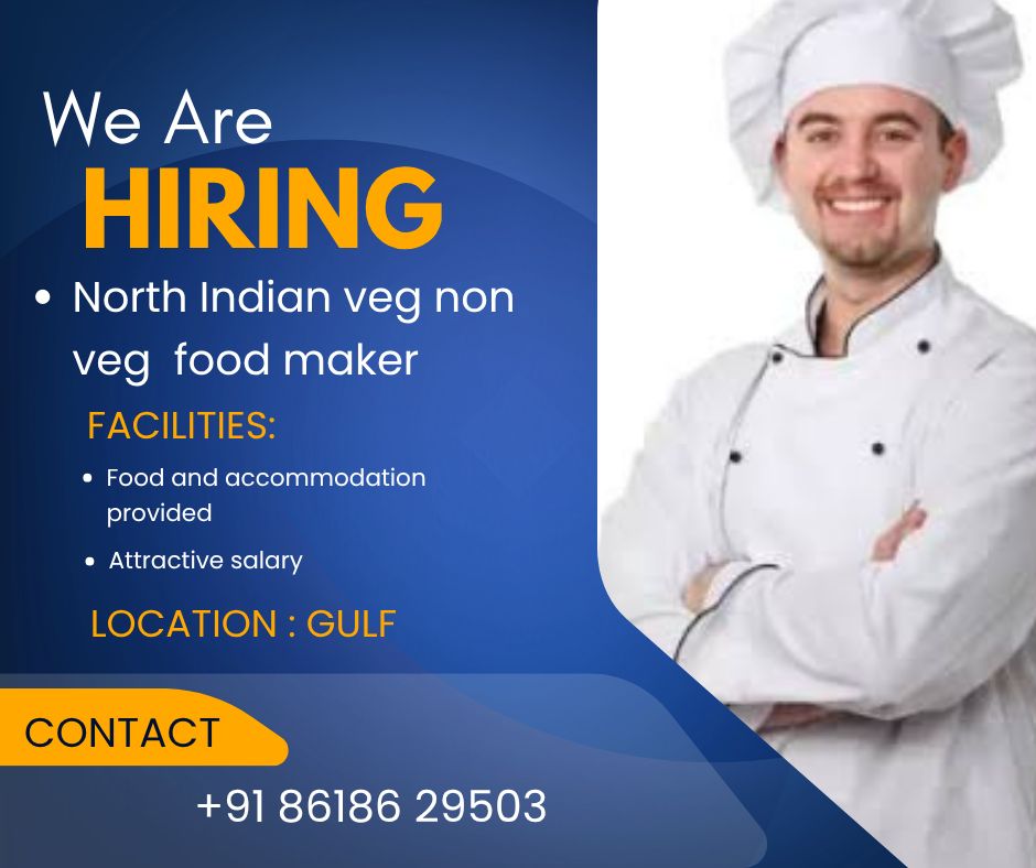 ಗಲ್ಫ್ ನಲ್ಲಿ North Indian ಸಸ್ಯಾಹಾರಿ ಮತ್ತು ಮಾಂಸಾಹಾರಿ ಆಹಾರ ತಯಾರಕರು ಬೇಕಾಗಿದ್ದಾರೆ.