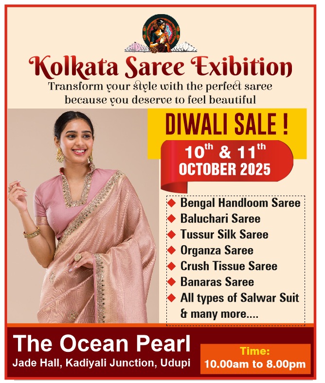 ಉಡುಪಿ:ಅ.10,11 ರಂದು ಕೋಲ್ಕತ್ತಾ ಸೀರೆ ಪ್ರದರ್ಶನ ಹಾಗೂ ದೀಪಾವಳಿ ಮಾರಾಟ