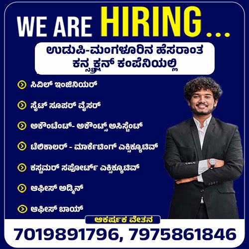 ಉಡುಪಿ-ಮಂಗಳೂರಿನ ಹೆಸರಾಂತ ಕನ್ಸ್ಟ್ರಕ್ಷನ್ ಕಂಪೆನಿಯಲ್ಲಿ ಉದ್ಯೋಗವಕಾಶ!
