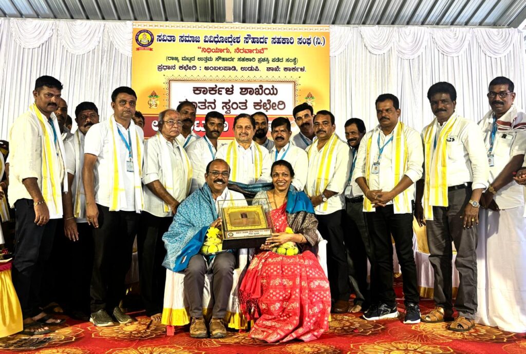 ಸವಿತಾ ಸಮಾಜ ವಿವಿಧೋದ್ದೇಶ ಸೌಹಾರ್ದ ಸಹಕಾರಿ ಸಂಘದ ಕಾರ್ಕಳ ಶಾಖೆಯ ನೂತನ ಸ್ವಂತ ಕಚೇರಿ ಉದ್ಘಾಟನೆ: ಅಧ್ಯಕ್ಷ ನವೀನ್ಚಂದ್ರ ದಂಪತಿಗೆ ಸಮ್ಮಾನ.