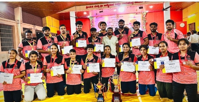 ಮೂಡುಬಿದಿರೆ: ಮುಡಿಪು ಸರಕಾರಿ ಪ್ರಥಮ ದರ್ಜೆ ಕಾಲೇಜಿನಲ್ಲಿ ಜರುಗಿದ ಮಂಗಳೂರು ವಿ ವಿ ಮಟ್ಟದ ಅಂತರ್ ಕಾಲೇಜು ಕುಸ್ತಿ ಸ್ಪರ್ಧೆಯ ಪುರುಷ ಹಾಗೂ ಮಹಿಳೆಯರ ಎರಡು ವಿಭಾಗದಲ್ಲಿ 11 ಚಿನ್ನ, 07 ಬೆಳ್ಳಿ ಹಾಗೂ 02 ಕಂಚಿನ ಪದಕದೊಂದಿಗೆ ಮೂಡುಬಿದಿರೆಯ ಆಳ್ವಾಸ್ ಕುಸ್ತಿಪಟುಗಳು ಸಮಗ್ರ ಪ್ರಶಸ್ತಿಯನ್ನು ಪಡೆದುಕೊಂಡರು. ಫಲಿತಾಂಶ :ಪುರುಷರ ವಿಭಾಗದಲ್ಲಿ : ದೇವರಾಜು – 61 ಕೆಜಿ ವಿಭಾಗದಲ್ಲಿ (ದ್ವಿತೀಯ), ನಿಖಿಲ್ – 65 ಕೆಜಿ ವಿಭಾಗದಲ್ಲಿ (ಪ್ರಥಮ), ರಾಕೇಶ್ – 70 ಕೆಜಿ ವಿಭಾಗದಲ್ಲಿ […]