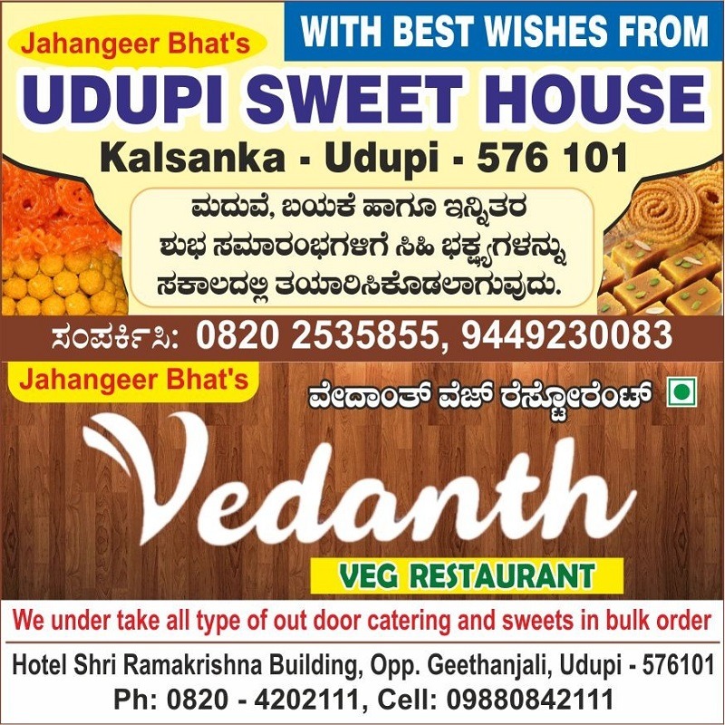 ಉಡುಪಿ: ನಗರದ ಕಲ್ಸಂಕ ವೃತ್ತದ ಬಳಿಯಲ್ಲಿ ಸಿಹಿ ತಿಂಡಿಗಳ ತಯಾರಿಕೆಯಲ್ಲಿ 42 ವರ್ಷಗಳಿಂದ ತೊಡಗಿಸಿಕೊಂಡಿರುವ ”ಜಹಾಂಗೀರ್ ಭಟ್ಸ್ ಉಡುಪಿ ಸ್ವೀಟ್ ಹೌಸ್ ಹಾಗೂ ವೇದಾಂತ್ ವೆಜ್ ರೆಸ್ಟೋರೆಂಟ್ ನಲ್ಲಿ ದೀಪಾವಳಿ ಹಬ್ಬದ ಪ್ರಯುಕ್ತ ಸ್ಪರ್ಧಾತ್ಮಕ ದರದಲ್ಲಿ ವೈವಿಧ್ಯಮಯ ಸ್ವೀಟ್ಸ್ ಮಾರಾಟವನ್ನು ಆಯೋಜಿಸಲಾಗಿದೆ. ಉಡುಪಿ ಸ್ವೀಟ್ ಹೌಸ್’ನಲ್ಲಿ ಪಾರಂಪರಿಕ ಮತ್ತು ನವೀನ ಮಾದರಿಯ ಎಲ್ಲಾ ತರಹದ ಸಿಹಿ ಹಾಗೂ ಖಾರ ತಿಂಡಿಗಳನ್ನು ಶುದ್ಧ ತುಪ್ಪದಿಂದ ತಯಾರಿಸಲಾಗುತ್ತದೆ. ಗ್ರಾಹಕರಿಗೆ ವಿಶೇಷ ಗಿಫ್ಟ್ ಪ್ಯಾಕ್ ಗಳು ದೊರೆಯಲಿವೆ. ಸೂಪರ್ ಸ್ಪೆಷಲ್ ಸ್ವೀಟ್ಸ್, […]