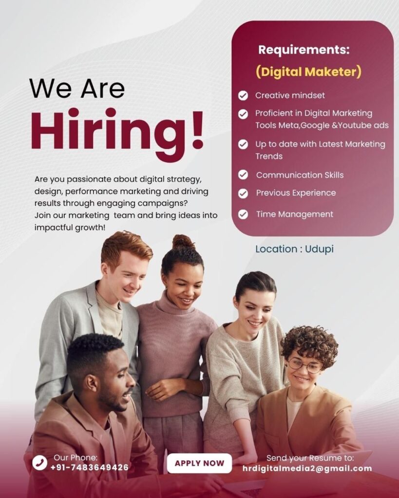 ಉಡುಪಿಯಲ್ಲಿ ಡಿಜಿಟಲ್ ಮಾರ್ಕೆಟರ್ ಹುದ್ದೆಗೆ ನೇಮಕಾತಿ