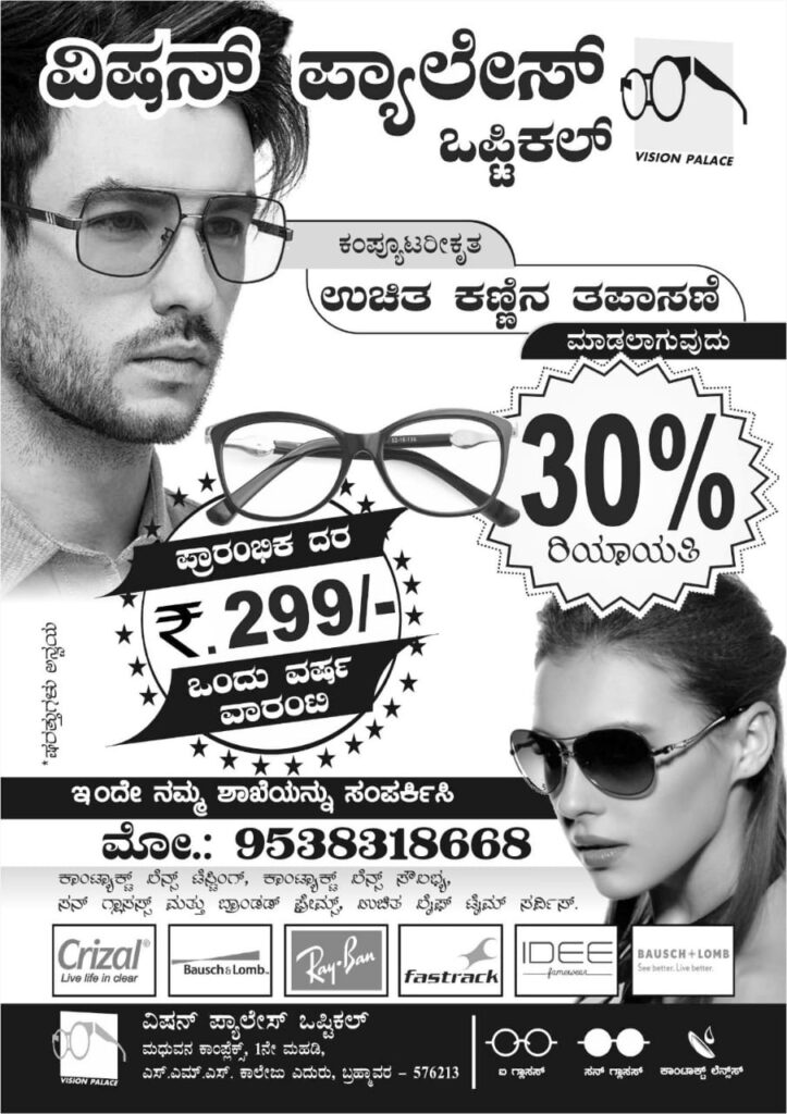 ನಿಮ್ಮ ಕಣ್ಣೋಟಕ್ಕೆ ಕೊಡಿ ಬ್ಯೂಟಿಫುಲ್ ಫೀಲ್: ಬ್ರಹ್ಮಾವರದ ವಿಷನ್ ಪ್ಯಾಲೇಸ್ ಒಪ್ಟಿಕಲ್ ನಲ್ಲಿದೆ ದಿ ಬೆಸ್ಟ್ ಆಫರ್ ಗಳು!