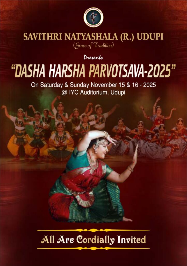 ಉಡುಪಿ:ನ.15,16 ರಂದು ಸಾವಿತ್ರಿ ನಾಟ್ಯಶಾಲ(ರಿ) ಉಡುಪಿಯಲ್ಲಿ ದಶ ಹರ್ಷ ಪರ್ವೋತ್ಸವ – 2025