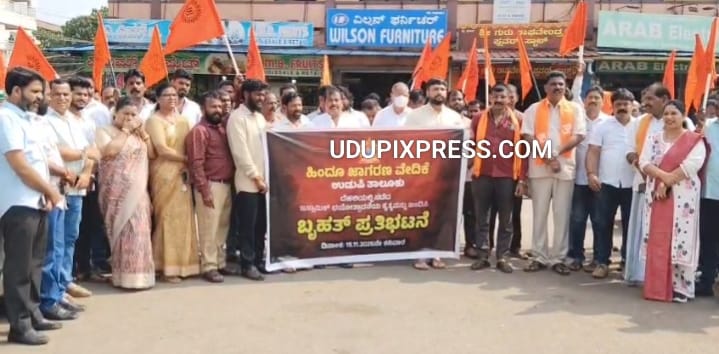 ಉಡುಪಿ: ಉಗ್ರರ ದಾಳಿ ಖಂಡಿಸಿ ಹಿಂದೂ ಜಾಗರಣ ವೇದಿಕೆ ಪ್ರತಿಭಟನೆ
