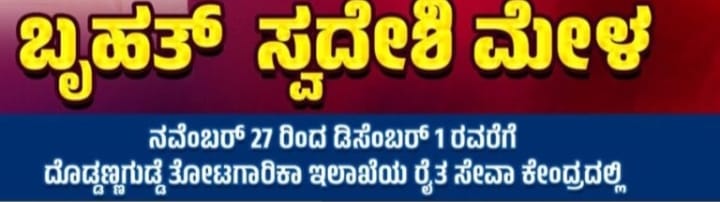 ನವೆಂಬರ್ 27 ರಿಂದ ಡಿಸೆಂಬರ್ 1 ರವರೆಗೆ ಉಡುಪಿಯಲ್ಲಿ ಬೃಹತ್ ಸ್ವದೇಶಿ ಮೇಳ.