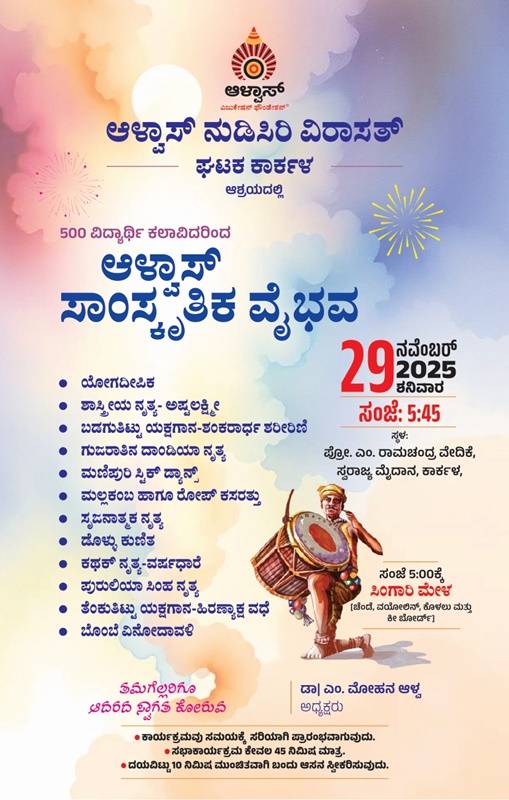 ಕಾರ್ಕಳದಲ್ಲಿ ಆಳ್ವಾಸ್ ನುಡಿಸಿರಿ–ವಿರಾಸತ್ ಅದ್ಧೂರಿ ಸಾಂಸ್ಕೃತಿಕ ವೈಭವ