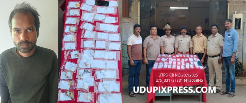 ಉಡುಪಿ: ಮನೆಯೊಂದಕ್ಕೆ ನುಗ್ಗಿ 65.79 ಲಕ್ಷ ರೂ. ಮೌಲ್ಯದ ಚಿನ್ನಾಭರಣ ಕಳವು: ಖತರ್ನಾಕ್ ಕಳ್ಳನ ಬಂಧನ.