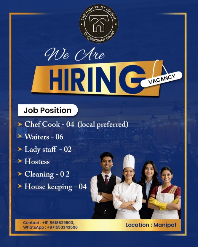 ಉಡುಪಿ:The High Point Lounge ನಲ್ಲಿ ಉದ್ಯೋಗಾವಕಾಶಗಳು