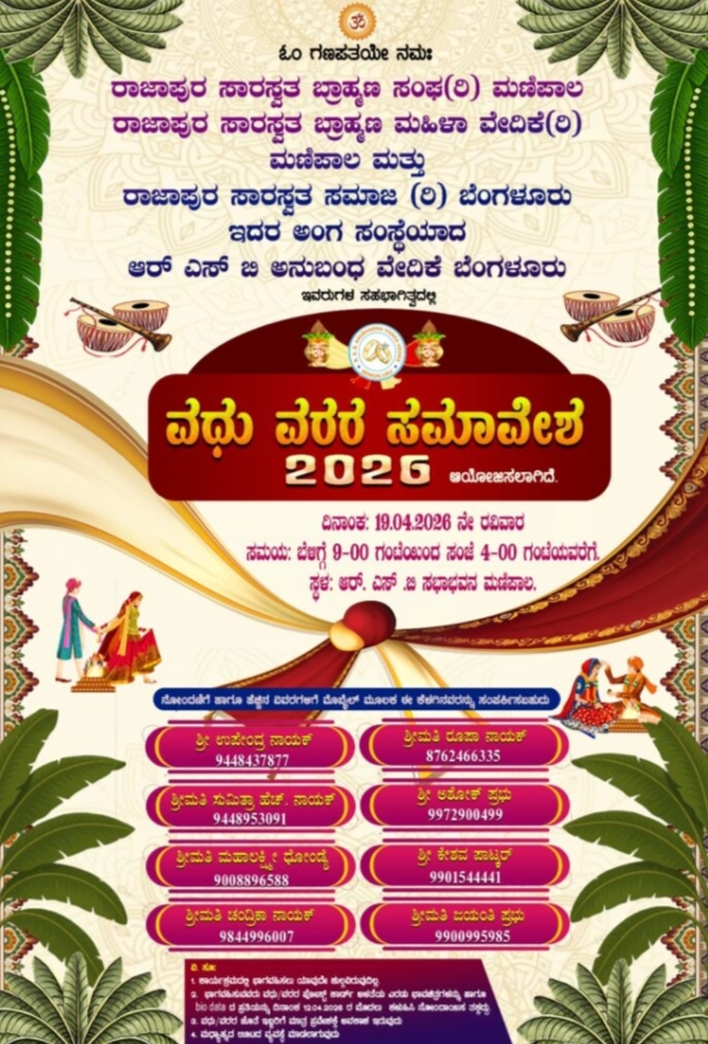 ಮಣಿಪಾಲ: ಏಪ್ರಿಲ್ 19 ರಂದು ಆರ್ ಎಸ್ ಬಿ ಸಮಾಜದಿಂದ ವಧುವರ ಸಮಾವೇಶ.