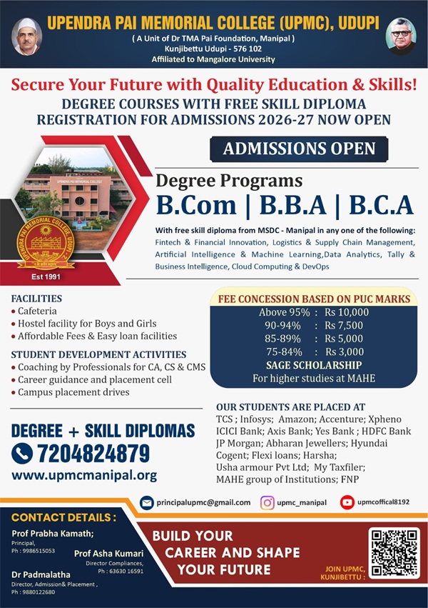 ಪದವಿ ಮತ್ತು ಕೌಶಲ್ಯಾಧಾರಿತ ಶಿಕ್ಷಣದ ಸಂಗಮ: ಉಡುಪಿ ಉಪೇಂದ್ರ ಪೈ ಕಾಲೇಜು-MSDC ಸಹಯೋಗದಲ್ಲಿ ಪಡೆಯಿರಿ ಉದ್ಯೋಗಾಧಾರಿತ ಶಿಕ್ಷಣ; ದಾಖಲಾತಿ ಆರಂಭ