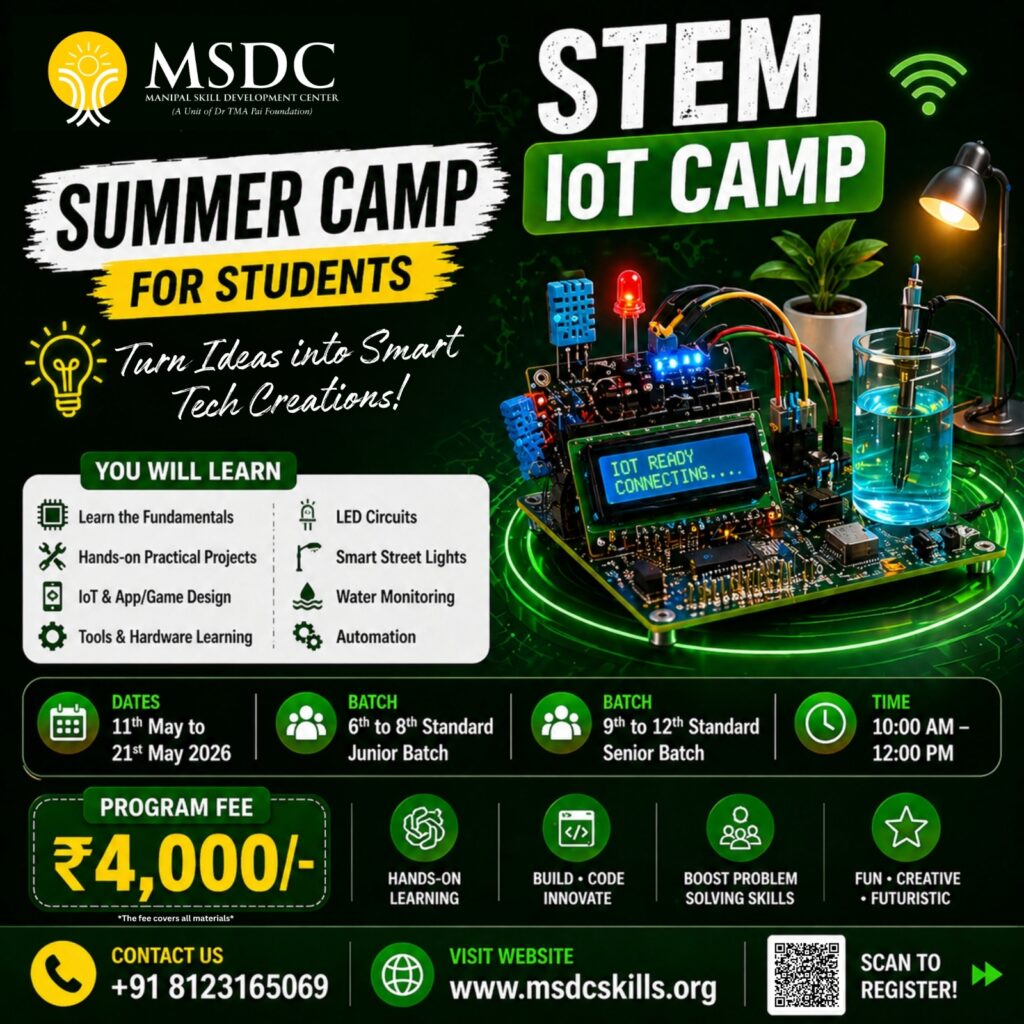 ಮಣಿಪಾಲ MSDC ಯಿಂದ ತಂತ್ರಜ್ಞಾನಾಧಾರಿತ ಕಲಿಕೆಯ ಬೇಸಿಗೆ ಶಿಬಿರ, ವಿದ್ಯಾರ್ಥಿಗಳನ್ನು ಭವಿಷ್ಯಕ್ಕಾಗಿ ಸಿದ್ಧಗೊಳಿಸುವ ವಿಶೇಷ ಕ್ಯಾಂಪ್!