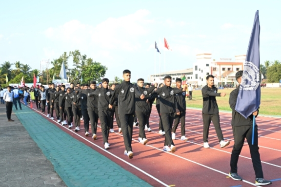 ಇದಕ್ಕೂ ಮೊದಲು ಕ್ರೀಡಾಕೂಟದಲ್ಲಿ ಪಾಲ್ಗೊಂಡ ಎಲ್ಲ ವಿಶ್ವವಿದ್ಯಾಲಯಗಳ ಕ್ರೀಡಾಪಟುಗಳ ಪಥಸಂಚಲನ ನಡೆಯಿತು. ವಿಧಾನಸಭೆಯ ಸಭಾಪತಿ ಯು.ಟಿ. ಖಾದರ್ ಫರೀದ್ ಗೌರವ ರಕ್ಷೆ ಸ್ವೀಕರಿಸಿದರು.ಮಹಿಳಾ ಕಬಡ್ಡಿ ವಿಶ್ವಕಪ್ ವಿಜೇತ ಭಾರತೀಯ ತಂಡ ಪ್ರತಿನಿಧಿಸಿದ ಧನಲಕ್ಷ್ಮೀ ಅವರನ್ನು ಸನ್ಮಾನಿಸಲಾಯಿತು. ಬಳಿಕ ಸಿಡಿಮದ್ದಿನ ಪ್ರದರ್ಶನವು ಆಗಸದಲ್ಲಿ ಚಿತ್ತಾರ ಮೂಡಿಸಿತು.