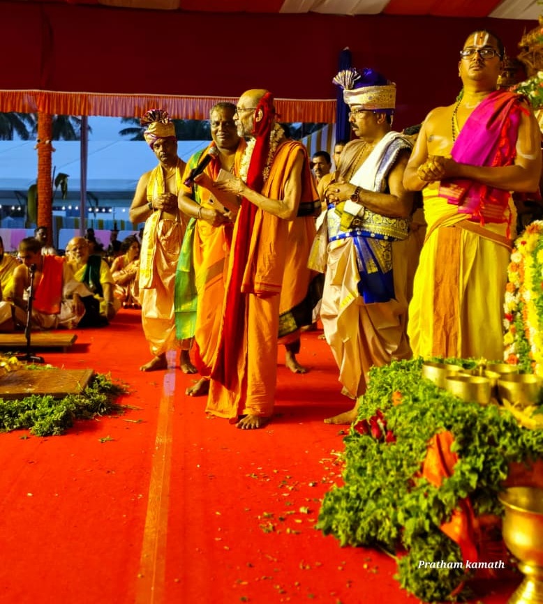 ಉಡುಪಿ: ತಿರುಪತಿ ತಿರುಮಲ ದೇವಸ್ಥಾನ ಸಮಿತಿ ವತಿಯಿಂದ ಕೆ.ಕೃಷ್ಣಮೋಹನ್ ಪೈ ಯುಎಸ್ಎ ಅವರ ಸಂಕಲ್ಪದಂತೆ ಕಟಪಾಡಿ ವಿಜಯಾ ಪೈ, ಪುರುಷೋತ್ತಮ ಪೈ ಹಾಗೂ ಕುಟುಂಬಸ್ಥರಿಂದ ಕಟಪಾಡಿಯಲ್ಲಿ ಶನಿವಾರ ಎಸ್ವಿ ಎಸ್ ಪದವಿ ಪೂರ್ವ ಕಾಲೇಜಿನ ಕ್ರೀಡಾಂಗಣದಲ್ಲಿ ವೈಭವದ ಶ್ರೀ ಶ್ರೀನಿವಾಸ ಕಲ್ಯಾಣೋತ್ಸವ ನಡೆಯಿತು. ಕಟಪಾಡಿ ಪೇಟೆಯಿಂದ ಕಲ್ಯಾಣ ಮಂಟಪದ ವರೆಗೆ ಶೋಭಾಯಾತ್ರೆಯಲ್ಲಿ ಬಂದ ದೇವರನ್ನು ತಿರುಪತಿಯಿಂದಲೇ ಬಂದ ವೈದಿಕ ವೃಂದವರ ನೇತೃತ್ವ ದಲ್ಲಿ ಕಲ್ಯಾಣ ಮಂಟಪದಲ್ಲಿ ಸರ್ವಾಲಂಕಾರ ಪೂರ್ವಕ ಸ್ಥಾಪಿಸಿ, ಕಲ್ಯಾಣೋತ್ಸವಕ್ಕೆ ಚಾಲನೆ ನೀಡಲಾಯಿತು. ಬಳಿಕ ವಿವಾಹ ಮಂಟಪಕ್ಕೆ ಶ್ರೀ ಪದ್ಮಾವತಿ ದೇವಿಯ ಆಗಮನ, ಸ್ವರ್ಣ ಮಣೆ ಬಂಧನ, ಮುಹೂರ್ತ ನಿರೀ ಕ್ಷಣೆ, ಮಾಲಾಧಾರಣೆ ನಡೆದು ಗೋಧೂಳಿ ಲಗ್ನ ಸುಮುಹೂರ್ತದಲ್ಲಿ ಶ್ರೀನಿವಾಸ ದೇವರಿಗೆ ಪದ್ಮಾವತಿ ದೇವಿಯ ಕನ್ಯಾದಾನ ಮಾಡುವ ಮೂಲಕ ಕಲ್ಯಾಣೋ ತ್ಸವ ನೆರವೇರಿಸಲಾಯಿತು. ಬಳಿಕ ಪ್ರಸಾದ ವಿತರಣೆ ಸಾರ್ವಜನಿಕ ಮಹಾ ಅನ್ನಸಂತರ್ಪಣೆ ನಡೆಯಿತು. ಉಡುಪಿ ಕೃಷ್ಣಾಪುರ ಮಠದ ಶ್ರೀ ವಿದ್ಯಾಸಾಗರ ತೀರ್ಥ ಶ್ರೀಪಾದರು ಉಪಸ್ಥಿತರಿದ್ದರು. ಕಲ್ಯಾಣೋತ್ಸವ ಸೇವಾದಾರರಾದ ಕಟಪಾಡಿ ವಿಜಯಾ ಪೈ, ಪುರುಷೋತ್ತಮ ಪೈ, ಕೆ.ಕೃಷ್ಣಮೋಹನ್ ಪೈ, ಕೆ.ಸತ್ಯೇಂದ್ರ ಪೈ ಹಾಗೂ ಕುಟುಂಬಸ್ಥರು ಉಪಸ್ಥಿತರಿದ್ದರು. ಪುತ್ತಿಗೆ ಮಠದ ಗೋಪಾಲ ಆಚಾರ್ಯ ತೆಲುಗುನಿಂದ ಕನ್ನಡಕ್ಕೆ ಭಾಷಾಂತರ ಮಾಡಿದರು.
