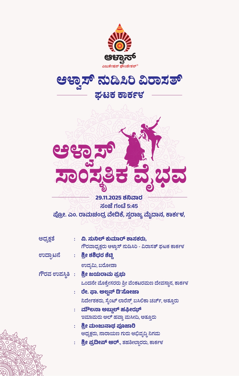 ಕಾರ್ಕಳದಲ್ಲಿ ಆಳ್ವಾಸ್ ನುಡಿಸಿರಿ–ವಿರಾಸತ್ ಅದ್ಧೂರಿ ಸಾಂಸ್ಕೃತಿಕ ವೈಭವ