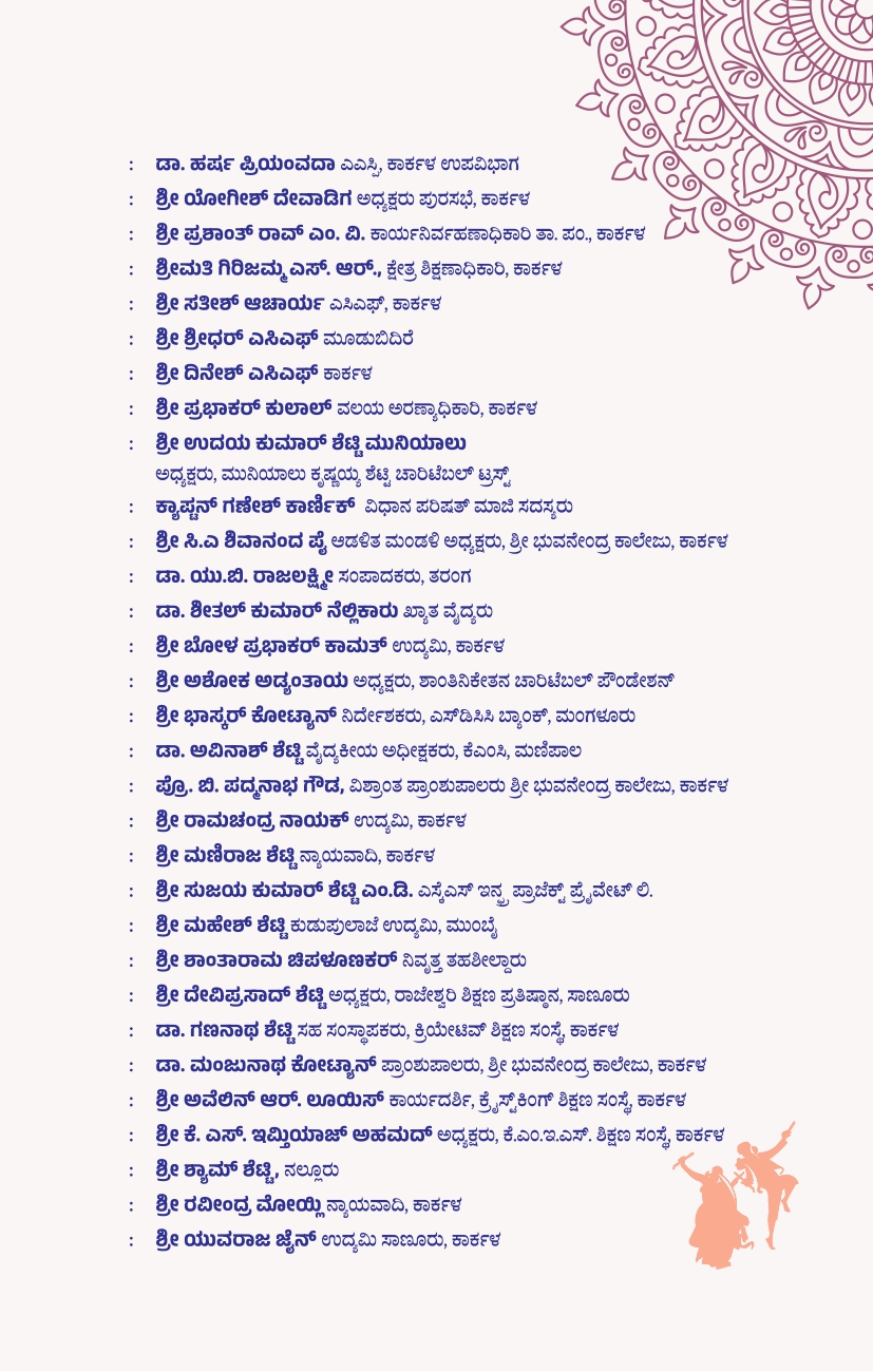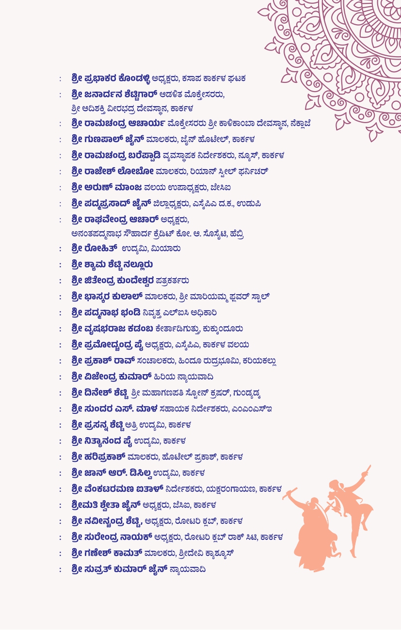 ಕಾರ್ಯಕ್ರಮವು ಆಳ್ವಾಸ್ ವಿದ್ಯಾರ್ಥಿಗಳ ಸಿಂಗಾರಿ ಮೇಳ ಪ್ಯೂಷನ್ ವಿನೋದಾವಳಿಯೊಂದಿಗೆ ಆರಂಭಗೊಳ್ಳಲಿದ್ದು, ಆಕರ್ಷಕ ಬೊಂಬೆ ಸಿಡಿಮದ್ದಿನ ಪ್ರದರ್ಶನವು ಪ್ರೇಕ್ಷಕರ ಗಮನ ಸೆಳೆಯಲಿದೆ.