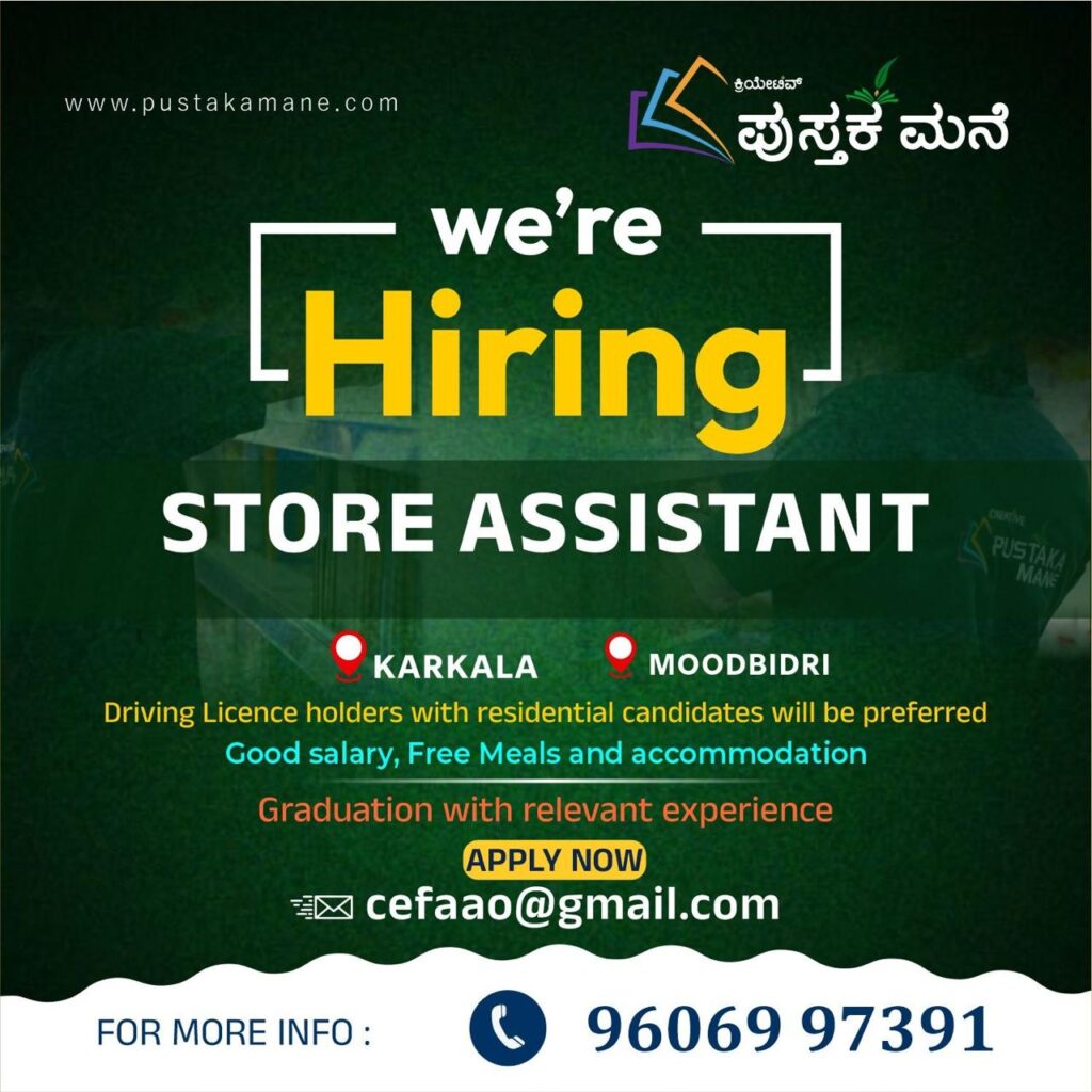 ಕಾರ್ಕಳ–ಮೂಡುಬಿದ್ರೆ: ‘ಪುಸ್ತಕ ಮನೆ’ಯಲ್ಲಿ ಸ್ಟೋರ್ ಅಸಿಸ್ಟಂಟ್ ಹುದ್ದೆಗೆ ನೇಮಕಾತಿ