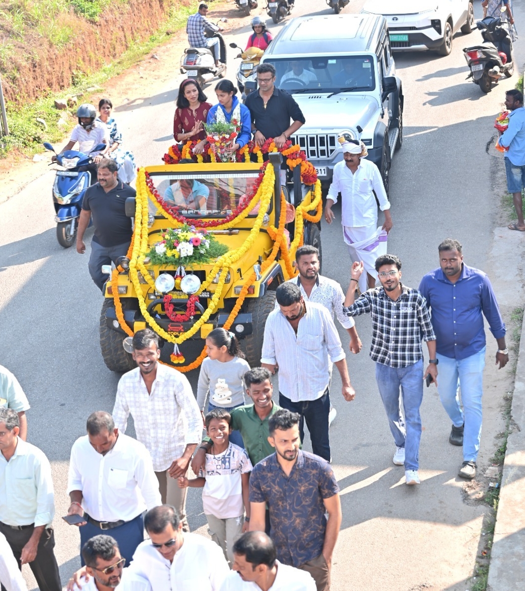 ತೆರೆದ ಜೀಪಿನಲ್ಲಿ ಚೆಂಡೆ, ಬ್ಯಾಂಡ್ ಘೋಷಗಳೊಂದಿಗೆ ಭವ್ಯ
