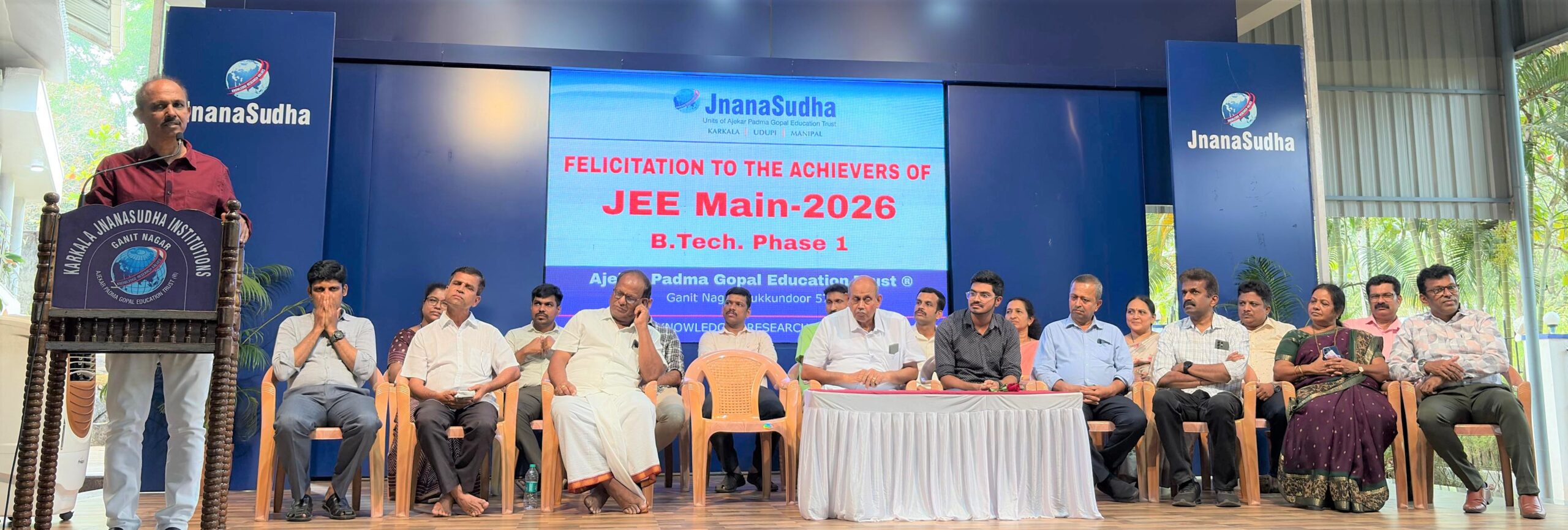 ಅಜೆಕಾರ್ ಪದ್ಮಗೋಪಾಲ್ ಎಜ್ಯುಕೇಶನ್ ಟ್ರಸ್ಟಿನ ವತಿಯಿಂದ ಕಾರ್ಕಳ ಜ್ಞಾನಸುಧಾ ಪದವಿ ಪೂರ್ವ ಕಾಲೇಜಿನ ಜೆ.ಇ.ಇ ಮೈನ್ (ಬಿ.ಟೆಕ್) – 2026ರ ಮೊದಲ ಹಂತದ ಫಲಿತಾಂಶದಲ್ಲಿ 97ಕ್ಕಿಂತ ಅಧಿಕ ಪರ್ಸಂಟೈಲ್ ಗಳಿಸಿದ ಸಾಧಕ ವಿದ್ಯಾರ್ಥಿಗಳನ್ನು ಗೌರವಿಸಲಾಯಿತು.