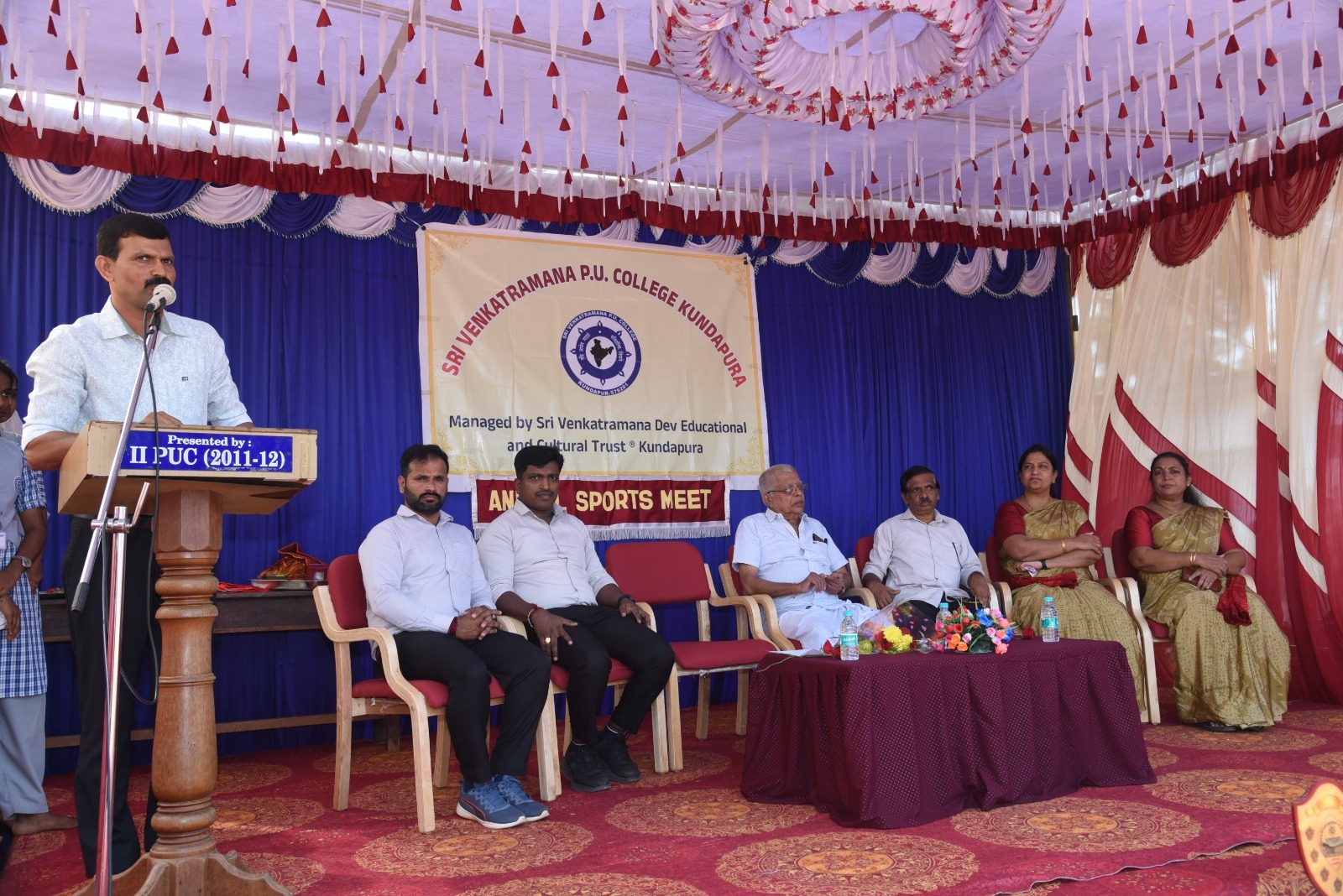 ಅಧ್ಯಕ್ಷ ಸ್ಥಾನವನ್ನು ವಹಿಸಿದ ಶ್ರೀ ವೆಂಕಟರಮಣ ದೇವ್ ಎಜುಕೇಶನಲ್ & ಕಲ್ಬರಲ್ ಟ್ರಸ್ಟ್ ನ ಕಾರ್ಯದರ್ಶಿ ಶ್ರೀ ಕೆ..ರಾಧಾಕೃಷ್ಣ ಶೆಣೈ ಯವರು ವಿದ್ಯಾರ್ಥಿಗಳಿಗೆ ಆರೋಗ್ಯವೇ ಭಾಗ್ಯವಾಗಿರುವುದರಿಂದ ಕ್ರೀಡಾ ಚಟುವಟಿಕೆಯಲ್ಲಿ ಭಾಗವಹಿಸಿಸುವುದರ ಮೂಲಕ ಸದೃಢ ಆರೋಗ್ಯವನ್ನು ತಮ್ಮದಾಗಿಸಿ ಕೊಳ್ಳಿ ಎಂದು ಶುಭ ಹಾರೈಸಿದರು.