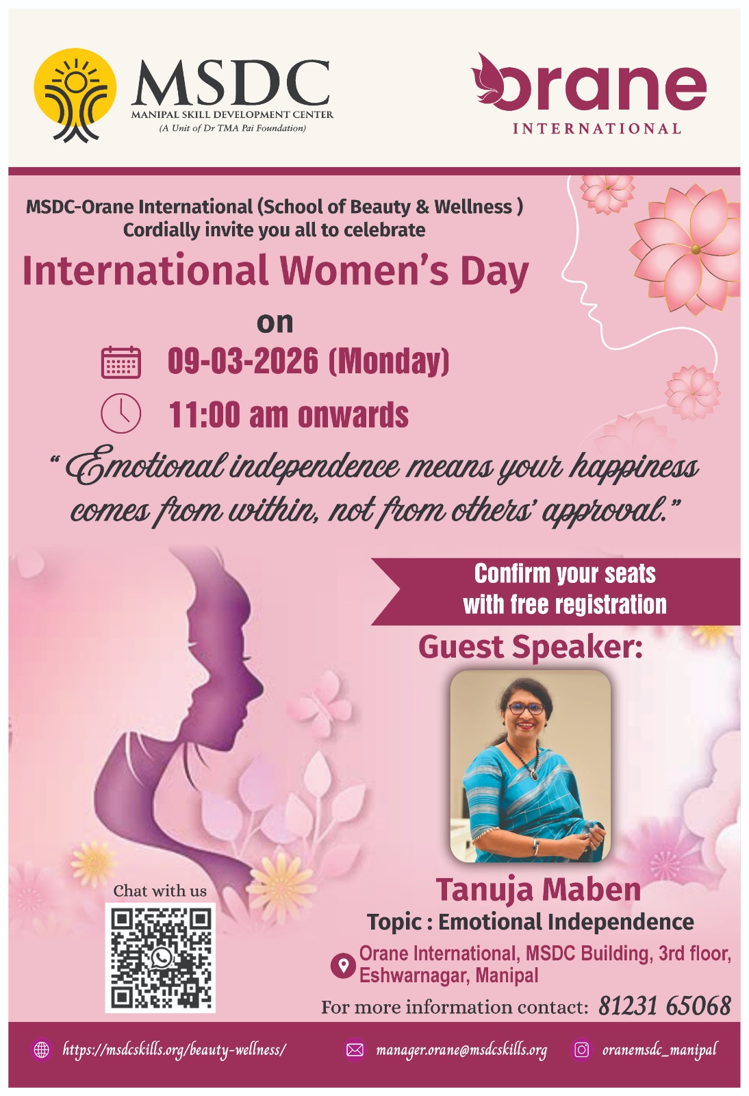 ಮಣಿಪಾಲ: ಮಣಿಪಾಲ MSDC ವತಿಯಿಂದ ಮಾರ್ಚ್ 9, ರಂದು ಬೆಳಿಗ್ಗೆ 11 ಗಂಟೆಯಿಂದ ಅಂತಾರಾಷ್ಟ್ರೀಯ ಮಹಿಳಾ ದಿನಾಚರಣೆ ಕಾರ್ಯಕ್ರಮ ನಡೆಯಲಿದೆ.