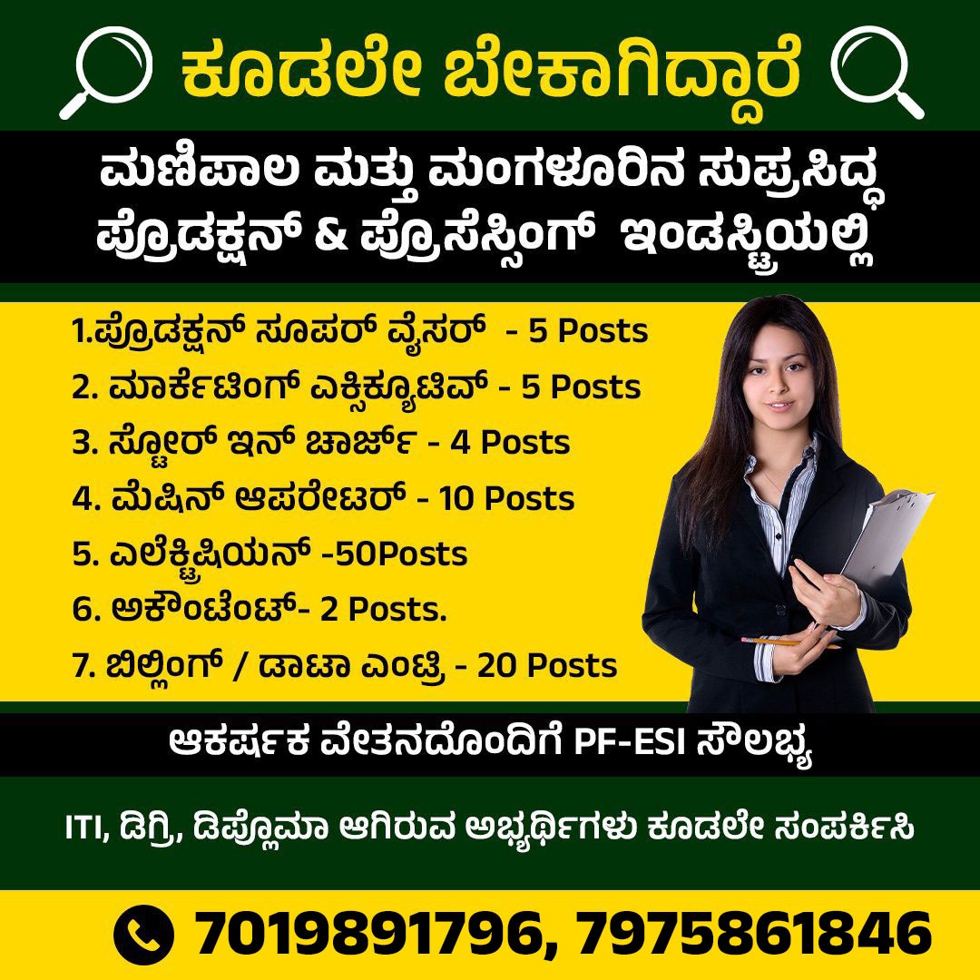 ಉಡುಪಿ:ಮಣಿಪಾಲ ಮತ್ತು ಮಂಗಳೂರಿನ ಸುಪ್ರಸಿದ್ಧ ಪ್ರೊಡಕ್ಷನ್ & ಪ್ರೊಸೆಸ್ಸಿಂಗ್ ಇಂಡಸ್ಟ್ರಿಯಲ್ಲಿ ವಿವಿಧ ಹುದ್ದೆಗಳಿಗೆ ನೇಮಕಾತಿ ನಡೆಯಲಿದೆ.
