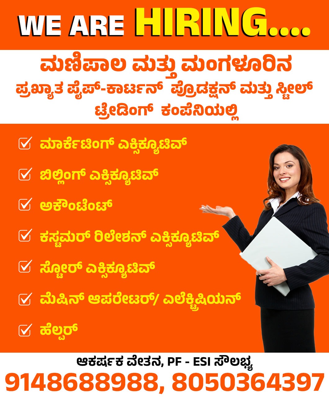 ಮಣಿಪಾಲ-ಮಂಗಳೂರಿನ ಪ್ರಖ್ಯಾತ ಕಂಪೆನಿಯಲ್ಲಿ ಉದ್ಯೋಗವಕಾಶ!