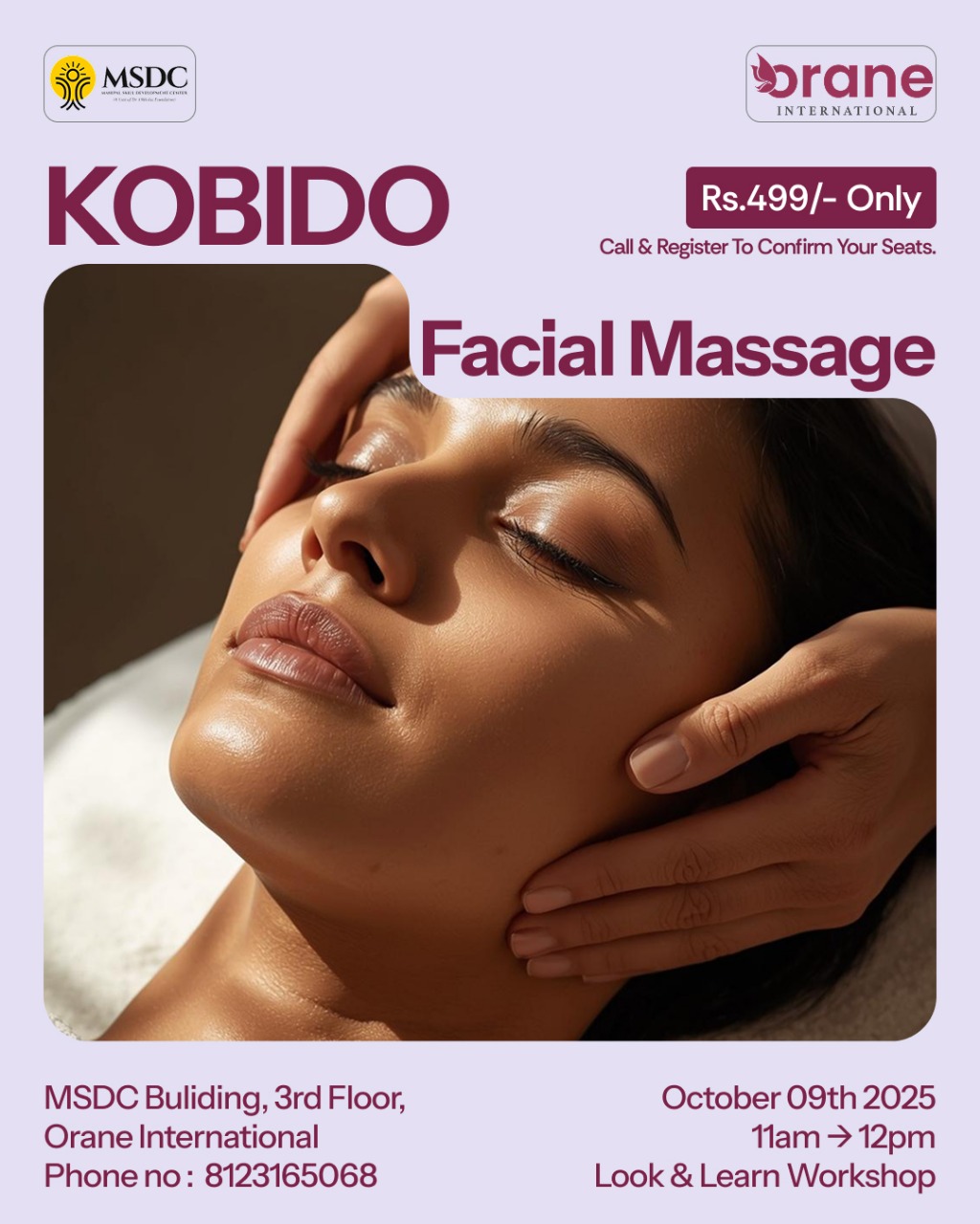 ಮಣಿಪಾಲ: ಅ.9 ರಂದು MSDC ಓರೇನ್ ಇಂಟರ್ನ್ಯಾಷನಲ್ ನಲ್ಲಿ ‘KOBIDO ಫೇಶಿಯಲ್ ಮಸಾಜ್’ ನೋಡಿ, ಕಲಿಯಿರಿ ಕಾರ್ಯಾಗಾರ