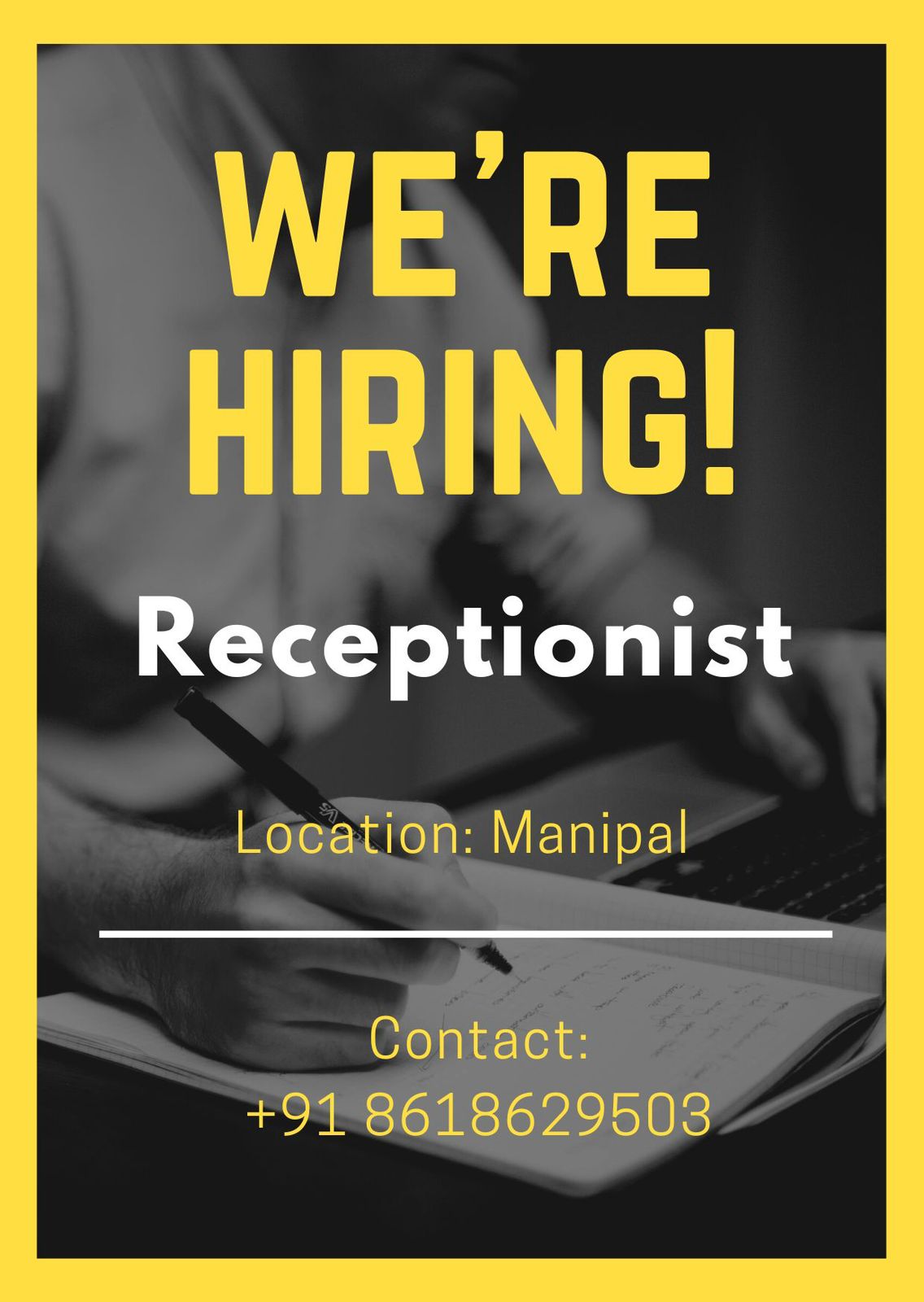 :ಮಣಿಪಾಲದಲ್ಲಿ ರಿಸೆಪ್ಷನಿಷ್ಟ್ ಹುದ್ದೆಗೆ ನೇಮಕಾತಿ ನಡೆಯಲಿದೆ.