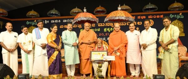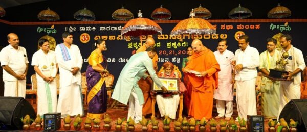 ಅವರು ಮುನಿಯಾಲು ಸಂಜೀವಿನಿ ಗೋಧಾಮದಲ್ಲಿ ಫೆಬ್ರವರಿ 21ರ ತನಕ ನಡೆಯುವ ಪಾರಂಪರಿಕ ಸಂಪ್ರದಾಯದಂತೆ ದೊಂದಿ ಬೆಳಕಿನಲ್ಲಿ ನಡೆಯುವ ಭಕ್ತಿಭಾವಪೂರ್ಣ ಏಕಪವಿತ್ರ ಶ್ರೀಮನ್ನಾಗಮಂಡಲದಲ್ಲಿ ಫೆಬ್ರವರಿ ಶುಕ್ರವಾರ ಸಂಜೆ ಶ್ರೀನಿವಾಸ ಸಭಾಮಂಟಪದಲ್ಲಿ ರೈತಪೀಠ ಪ್ರಶಸ್ತಿಯನ್ನು ಪ್ರಧಾನ ಸಡಗರದಲ್ಲಿ ಆಶೀರ್ವಚನ ನೀಡಿದರು.