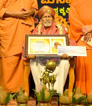 240ಕ್ಕೂ ಹೆಚ್ಚು ಭಾರತೀಯ ಭತ್ತದ ತಳಿಗಳನ್ನು ಸಂರಕ್ಷಣೆ ಮಾಡಿದ ಅಪರೂಪದ ಕೃಷಿಕ ಋಷಿ ಬಿ.ಕೆ.ದೇವರಾಯ ಮಿತ್ತಬಾಗಿಲು ಅವರು ಮೂಡಬಿದರೆ ಎಸ್ ಕೆಎಫ್ ಸಂಸ್ಥೆ ನೀಡುವ ನೂತನ ಪ್ರಥಮ ರೈತಪೀಠ ಪ್ರಶಸ್ತಿಯನ್ನು ಮುನಿಯಾಲು ಸಂಜೀವಿನಿ ಗೊಧಾಮದಲ್ಲಿ ಶುಕ್ರವಾರ ಸ್ವೀಕರಿದರು.