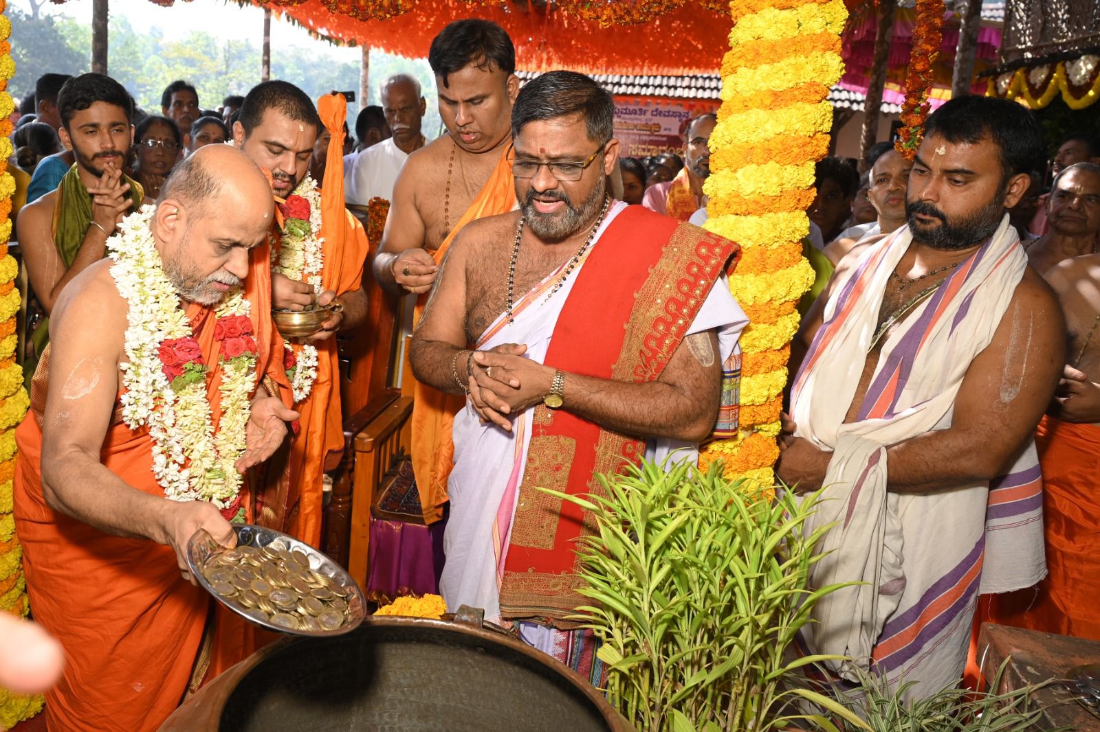 ನಂತರ ಸಾಮೂಹಿಕ ಪ್ರಾರ್ಥನೆ, ಗಣಹೋಮವನ್ನು ಮಾಡಲಾಯಿತು. ನಂತರ ಪುತ್ತಿಗೆ ಮಠಾಧೀಶರಾದ ಸುಗುಣೇಂದ್ರತೀರ್ಥ ಶ್ರೀಪಾದರು ಮತ್ತು ಕಿರಿಯ ಯತಿ ಸುಶೀಂದ್ರತೀರ್ಥ ಶ್ರೀಪಾದರು ಮುಷ್ಠಿ ಕಾಣಿಕೆಯನ್ನು ಸಮರ್ಪಿಸುವುದರ ಮೂಲಕ ಮುಷ್ಠಿ ಕಾಣಿಕೆ ಕಾರ್ಯಕ್ಕೆ ಚಾಲನೆಯನ್ನು ನೀಡಿದರು. ನಂತರ ಅಧಿಕ ಸಂಖ್ಯೆಯಲ್ಲಿ ಭಕ್ತರು ಮುಷ್ಠಿ ಕಾಣಿಕೆಯನ್ನು ಸಮರ್ಪಿಸಿದರು.