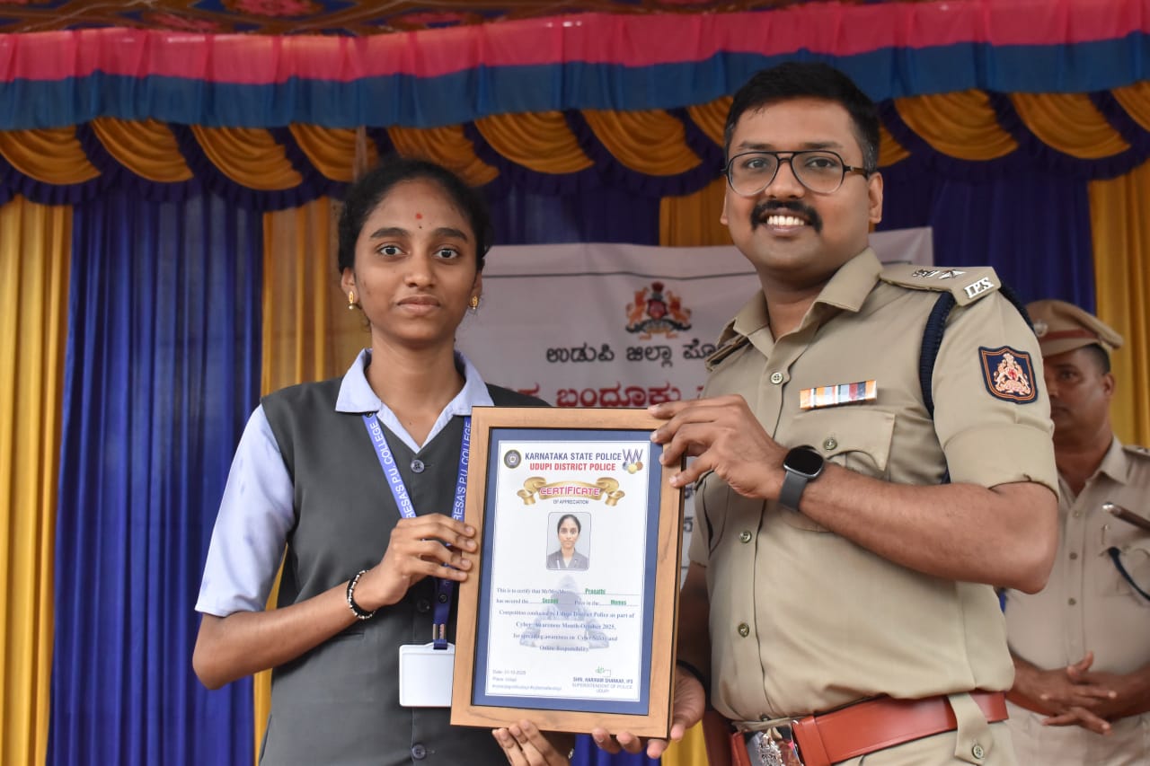 ಉಡುಪಿ ಜಿಲ್ಲಾ ಪೊಲೀಸ್ ಇಲಾಖೆಯ ಸ್ಪರ್ಧೆಯಲ್ಲಿ ಮದರ್ ತೆರೇಸಾ ಪದವಿಪೂರ್ವ ಕಾಲೇಜು ವಿದ್ಯಾರ್ಥಿನಿ ಪ್ರಣತಿಗೆ ದ್ವಿತೀಯ ಪ್ರಶಸ್ತಿ.