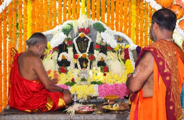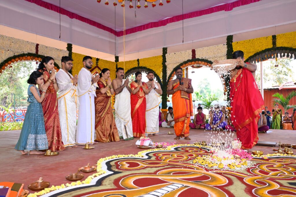 ಉಡುಪಿ: ಕೃಷಿಲೋಕ ಮುನಿಯಾಲಿನ ಗೋಧಾಮದಲ್ಲಿ ಪ್ರಕೃತಿಯಿಂದ ಪ್ರಕೃತಿಗೆ ಎಂಬ ವಿನೂತನ ಪರಿಕಲ್ಪನೆಯಲ್ಲಿ ಶುಕ್ರವಾರ ಪಾರಂಪರಿಕ ಸಂಪ್ರದಾಯದಂತೆ ದೊಂದಿ ಬೆಳಕಿನಲ್ಲಿ ನಡೆಯುವ ಭಕ್ತಿಭಾವಪೂರ್ಣ ಏಕಪವಿತ್ರ ಶ್ರೀಮನ್ನಾಗಮಂಡಲದ ಪೂರ್ವಭಾವಿಯಾಗಿ ಆಶ್ಲೇಷಾ ಬಲಿದಾನ, ಪಂಚವಿಶಂತಿ ದ್ರವ್ಯಮೀಳಿತಕಲಶ, ಪ್ರಧಾನ ಯಾಗ, ಸರ್ಪತ್ರಯ ಮಂತ್ರ ಯಾಗ, ಪವಮಾನಸೂಕ್ತ ಯಾಗ, ತಿಲ ಯಾಗ, ಬ್ರಹ್ಮಚಾರಿ ಆರಾಧನಾ, ಪ್ರಸನ್ನ ಪೂಜೆ, ಪಲ್ಲಪೂಜೆ,ಅನ್ನರಾಧನೆ ಸಹಿತ ವಿವಿಧ ಧಾರ್ಮಿಕ ಕಾರ್ಯಕ್ರಮಗಳು ನಡೆಯಿತು. ಶ್ರೀ ಭವಾನಿ ಭೋಜನಾಲಯದಲ್ಲಿ ಮಹಾ ಅನ್ನಸಂತರ್ಪಣೆ ನಡೆಯಿತು. ಸಂಜೆ ಶ್ರೀದುರ್ಗಾನಮಸ್ಕಾರ ಪೂಜೆ ನಡೆಯಿತು.