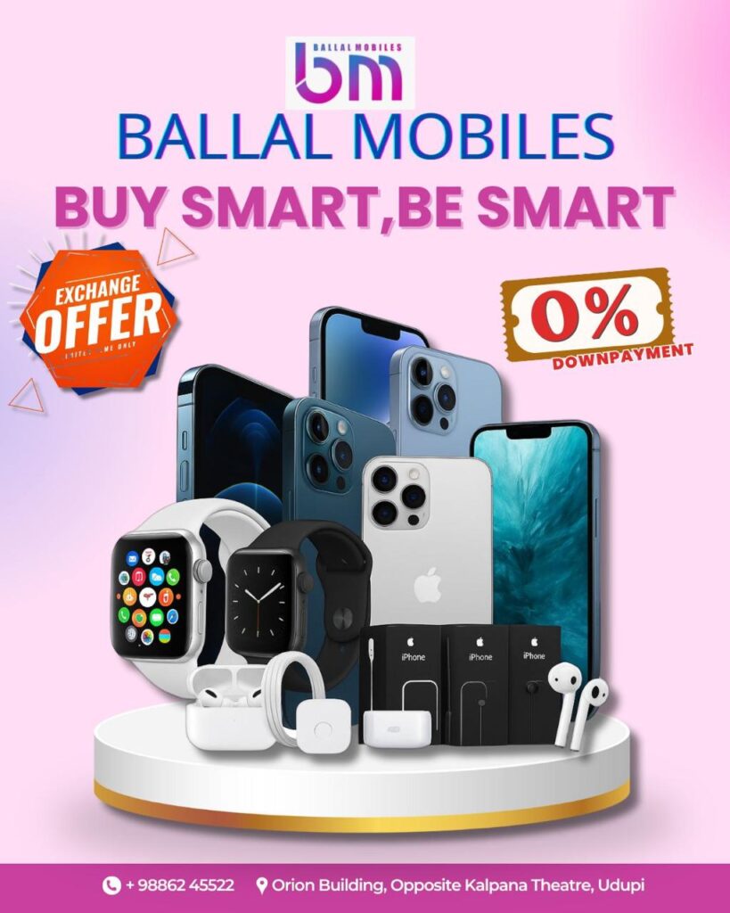 ಉಡುಪಿ: ಉಡುಪಿ ನಗರದ ಕಲ್ಪನಾ ಚಿತ್ರಮಂದಿರ ಬಳಿಯ ಒರಾಯನ್ ಕಟ್ಟಡದಲ್ಲಿ ಹೆಸರಾಂತ ಮೊಬೈಲ್ ಶೋರೂಮ್ ಆದ “ಬಲ್ಲಾಳ್ ಮೊಬೈಲ್ಸ್” ನಲ್ಲಿ ಗ್ರಾಹಕರಿಗೆ ಭರ್ಜರಿ ಆಫರ್’ಗಳ ಸುರಿಮಳೆಯನ್ನು ಲಾಂಚ್ ಮಾಡಿದ್ದಾರೆ. ನೀವು ನಿಮ್ಮ ಎಲ್ಲಾ ಹಬ್ಬಗಳನ್ನು ಶಾಪಿಂಗ್ ಮೂಲಕ ಇಲ್ಲಿ ಆಚರಿಸಿಕೊಳ್ಳಬಹುದಾಗಿದೆ.