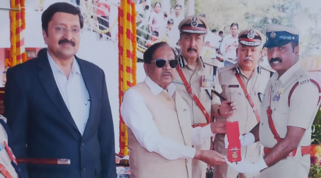 ಬೆಂಗಳೂರಿನ ಆರ್.ಎ ಮುಂಡ್ಕೂರು ಅಗ್ನಿಶಾಮಕ ಮತ್ತು ತುರ್ತು ಸೇವೆಗಳ ತರಬೇತಿ ಮಹಾವಿದ್ಯಾಲಯದಲ್ಲಿ ಇತ್ತೀಚೆಗೆ ನಡೆದ ಸಮಾರಂಭದಲ್ಲಿ ಕರ್ನಾಟಕ ಸರಕಾರದ ಗೃಹ ಸಚಿವ ಡಾ. ಜಿ. ಪರಮೇಶ್ವರ್ ಪದಕಗಳನ್ನು ನೀಡಿ ಗೌರವಿಸಿದ್ದಾರೆ.