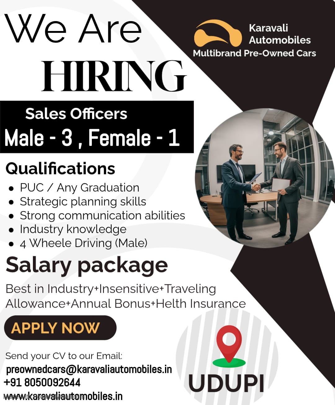 ಉಡುಪಿ:ಉಡುಪಿಯ ಕರಾವಳಿ ಆಟೋಮೊಬೈಲ್ಸ್ ನಲ್ಲಿ ವಿವಿಧ ಹುದ್ದೆಗಳಿಗೆ ನೇಮಕಾತಿ ನಡೆಯಲಿದೆ.