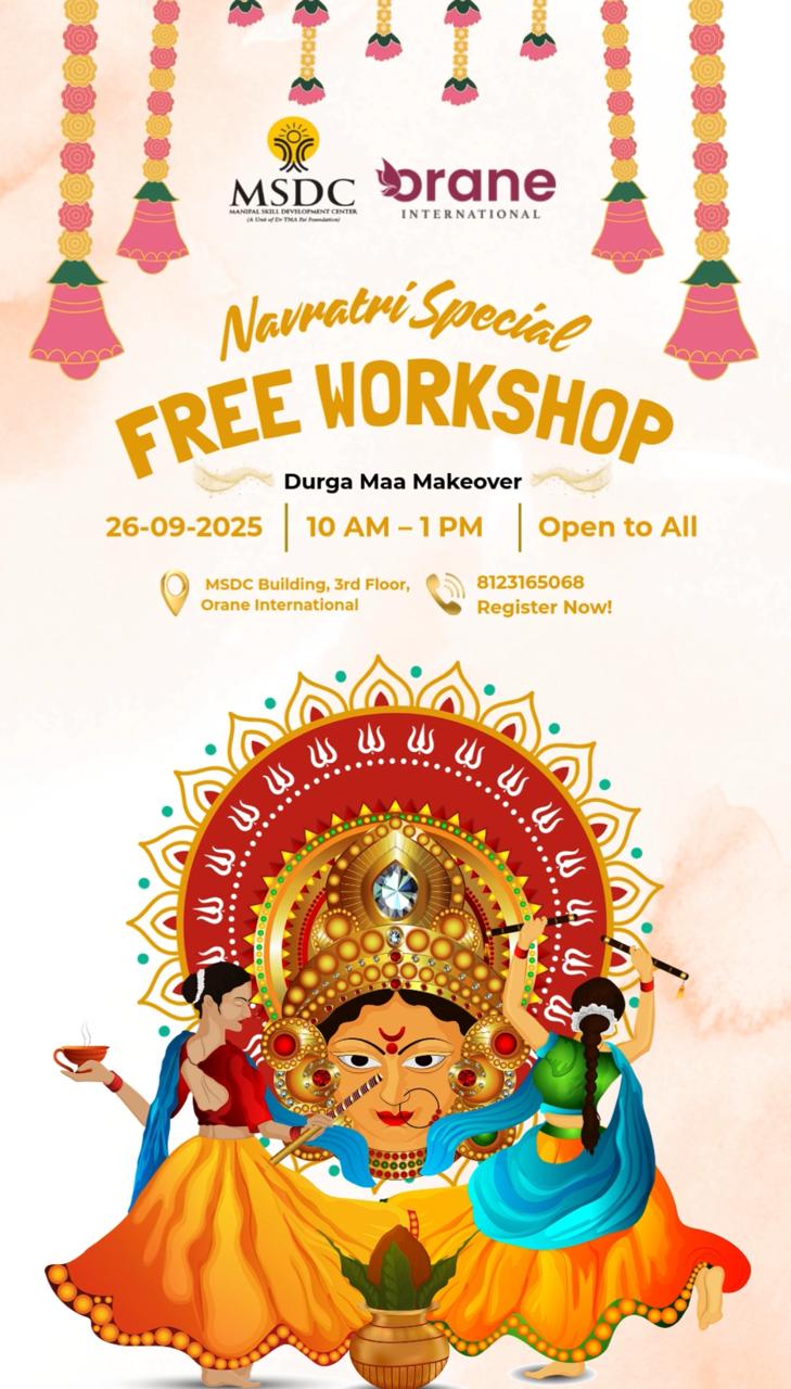 ಮಣಿಪಾಲ: ಸೆ.26ರಂದು MSDC ಓರೇನ್ ಇಂಟರ್ನ್ಯಾಷನಲ್ ನಲ್ಲಿ ನವರಾತ್ರಿ ಹಬ್ಬದ ವಿಶೇಷವಾಗಿ ‘ದುರ್ಗಾ ಮಾ ಮೇಕ್ ಓವರ್’ ಉಚಿತ ಕಾರ್ಯಗಾರ: ಆಸಕ್ತರು ತಮ್ಮ ಹೆಸರನ್ನು ನೋಂದಾಯಿಸಿಕೊಳ್ಳಿ!
