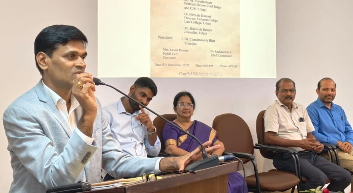 ಅವರು ಶುಕ್ರವಾರ ಉಡುಪಿಯ ಪೂರ್ಣಪ್ರಜ್ಞ ಸಂಧ್ಯಾ ಕಾಲೇಜಿನಲ್ಲಿ ಜಿಲ್ಲಾ ಕಾನೂನು ಸೇವಾ ಪ್ರಾಧಿಕಾರದ ಸಹಯೋಗದೊಂದಿಗೆ ನಡೆದ ” ಪೋಕ್ಸೊ ಕಾಯ್ದೆ”ಯ ಮಾಹಿತಿ ಕಾರ್ಯಾಗಾರದಲ್ಲಿ ವಿದ್ಯಾರ್ಥಿಗಳನ್ನುದ್ದೇಶಿಸಿ ಮಾತನಾಡಿದರು.