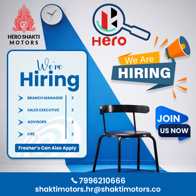 ಉಡುಪಿ:ಉಡುಪಿ ಜಿಲ್ಲೆಯ ಹೀರೋ ಶಕ್ತಿ ಮೋಟರ್ಸ್ ಸಂಸ್ಥೆಯಲ್ಲಿ ವಿವಿಧ ಹುದ್ದೆಗಳಿಗಾಗಿ ಅರ್ಹ ಅಭ್ಯರ್ಥಿಗಳಿಂದ ಅರ್ಜಿ ಆಹ್ವಾನಿಸಲಾಗಿದೆ.