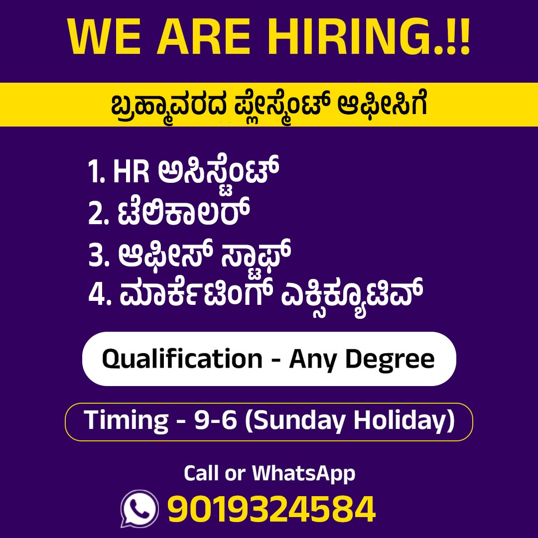 ▪️HR ಅಸಿಸ್ಟೆಂಟ್ ▪️ಟೆಲಿಕಾಲರ್ ▪️ಆಫೀಸ್ ಸ್ಟಾಫ್ ▪️ಮಾರ್ಕೆಟಿಂಗ್ ಎಕ್ಸಿಕ್ಯೂಟಿವ್