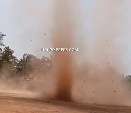 ಉಡುಪಿ: ಉಡುಪಿ ಜಿಲ್ಲೆಯ ಕುಂದಾಪುರ ತಾಲೂಕಿನ ನಾಡಗುಡ್ಡೆಅಂಗಡಿ ಪ್ರಾಥಮಿಕ ಆರೋಗ್ಯ ಕೇಂದ್ರದ ಎದುರಿನ ಜಾರು ಬಂಡಿ ಮೈದಾನದಲ್ಲಿ ವಿಚಿತ್ರ ಸುಳಿಗಾಳಿ ಕಾಣಿಸಿಕೊಂಡಿದ್ದು ಅದರ ವಿಡಿಯೋ ವೈರಲ್ ಆಗಿದೆ.